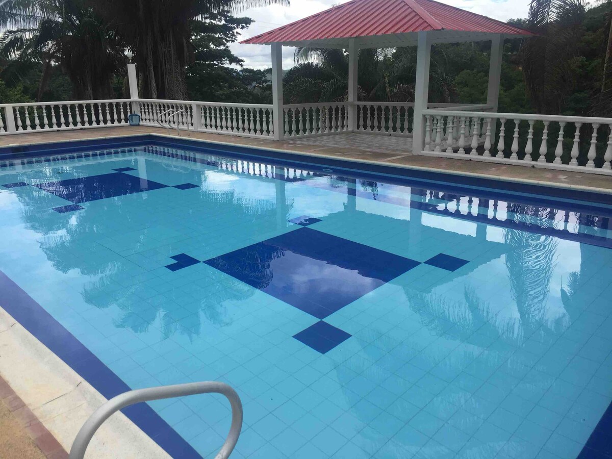 Villa sómasach atá suite díreach 2 uair an chloig ó Bogotá. Lonnaithe ar melgar trí Icononzo, 40 nóiméad ó Girardot, timpeallaithe ag crainn torthaí, áiteanna móra glasa agus sunsets dochreidte; foirfe chun am a dhícheangal agus a roinnt le teaghlaigh agus le cairde. Tá linn snámha, 4 sheomra leapa, 5 sheomra folctha, limistéar beárbaiciú, le hoigheann dóite adhmaid, cistin lánfheistithe, seomra bia, Wi - Fi, 1 teilifíseán, páirceáil phríobháideach, 15 nóiméad ó aerfhórsa Melgar, trí Icononzo.