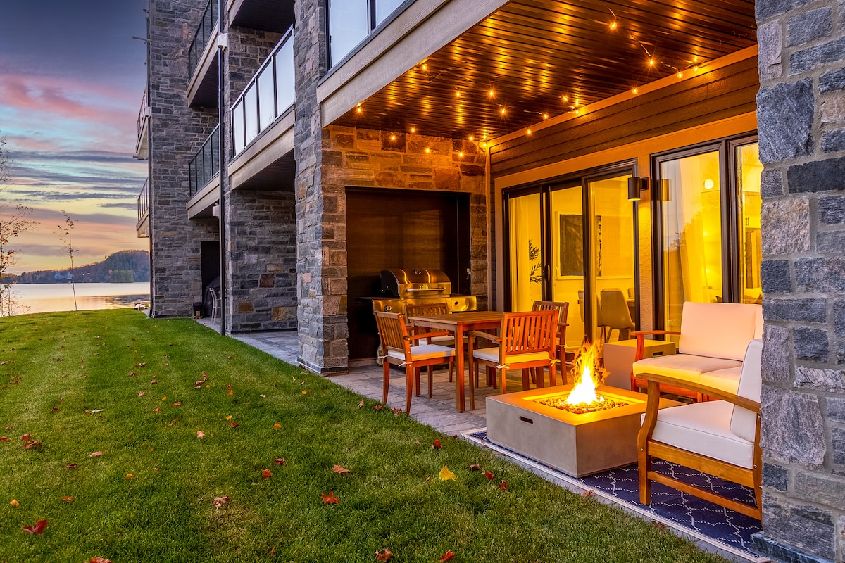 Suite ar bhruacha an locha Sí faoi na fíniúnacha bána arda, cuireann an bloc árasán seo ar urlár na talún clúdach thart ar an bpóirse le radharcanna áille locha. Turas 5 nóiméad is ea Grandview ó shiopadóireacht i gcroílár Huntsville, Algonquin Theatre agus roghanna bia éagsúla. Turas gearr chuig saoráidí saoire Deerhurst, galfchúrsa agus sciáil ag cnoc sciála Hidden Valley. Ceart trasna ó chúrsa Gailf feidhmiúcháin Grandview.
