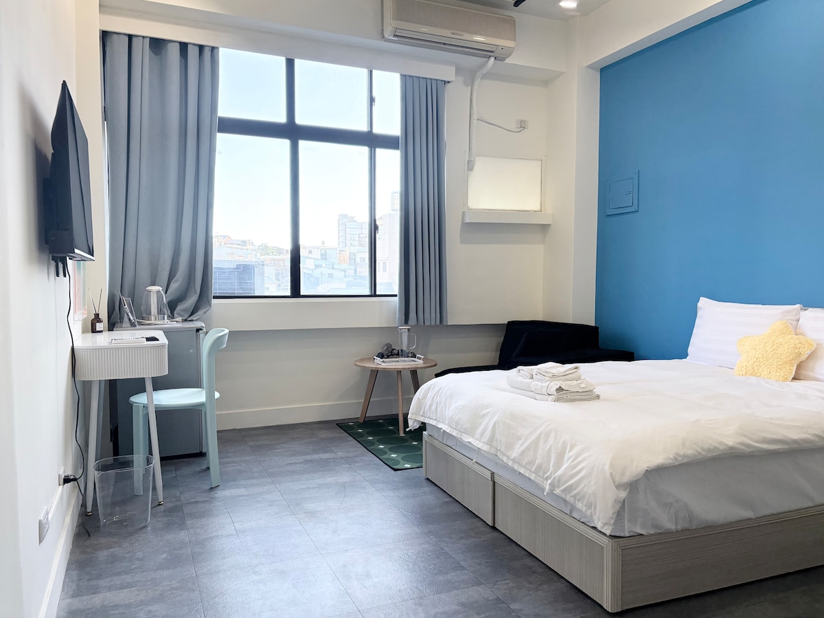 Spacious and bright marine style decoration, like walking on the beach, sunshine and shells of the island style Room equipment:Boutique bathroom, Q-SIZE bed , 42 inch TV , negative ions hair dryer Note: The landlord will help you carry your luggage upstairs