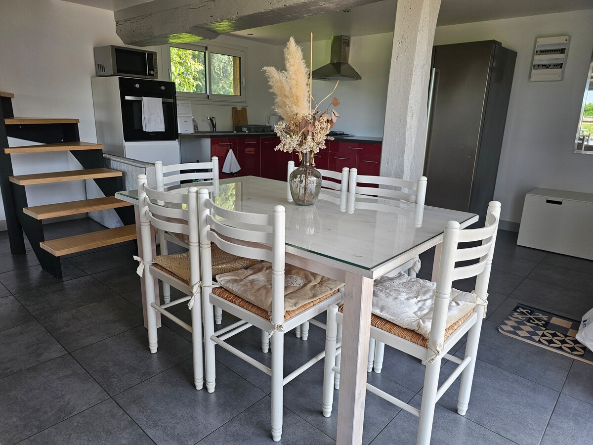 Agus é suite go hidéalach 1h40 ó Pháras, rinneadh athchóiriú ar an seanphreas fíona seo in 2023. Tá an teach thart timpeall air, tá an teach i sráidbhaile tipiciúil sa cheantar. Le hachar dromchla 200 m2, is féidir linn freastal ar 6 dhuine fásta agus leanaí. Cuireann an lóistín síochánta seo fanacht suaimhneach ar fáil don teaghlach ar fad nó le cairde. Tá an t - atmaisféar bucolic, an maisiúchán teasa a thairgeann na sónna go léir a bheidh uait chun do chadhnraí a athluchtú sa ghlas!