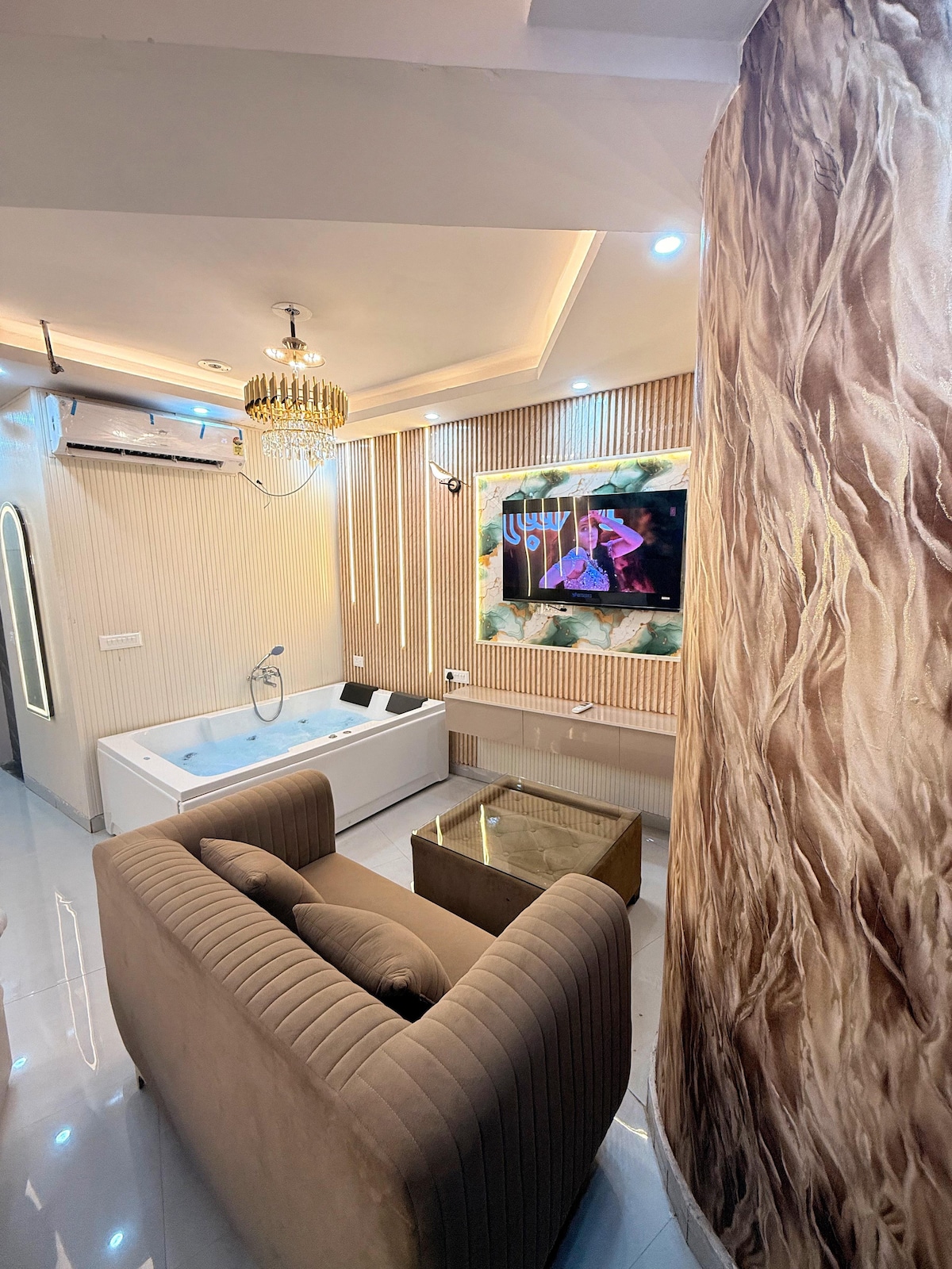 Saoráidí a bhfuil tóir orthu ag lóistíní ar cíos ina bhfuil tobán te in Noida