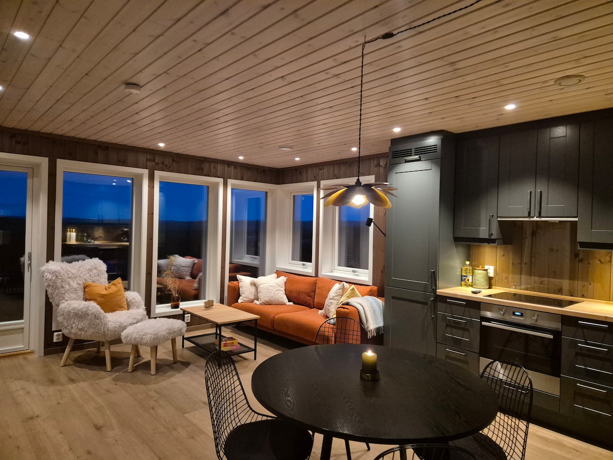 Tiocfaidh tú ar chábán croíúil fáilteach atá foirfe do laethanta scíthe sna sléibhte. Críochnaíodh an cábán álainn seo in 2020 agus tá sé suite go hálainn ag 1006 méadar os cionn na farraige. Roghnaítear gach rogha ábhar go cúramach chun ardchaighdeán a chinntiú, agus tá an taobh istigh maisithe go blasta le troscán lámhdhéanta agus saincheaptha ó Tafa Furniture in Gol. Le radhairc lánléargais ó gach spás maireachtála, is féidir leat taitneamh a bhaint as éirí na gréine ón bhfolcadán nó ón sabhna fiú.
