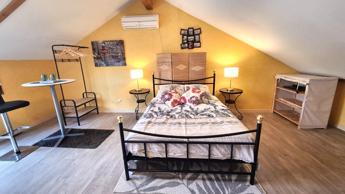 An bhfuil tú ag tabhairt cuairte ar Alsace do na laethanta saoire? Deireadh seachtaine le cairde, lánúineacha nó ina n - aonar? nó ar chúiseanna gairmiúla? Tá an cocún seo duitse! Toisc go bhfuil Chez Soi ina sheomra deas 2 thart ar 40m² gar do na sráidbhailte Alsatian is áille agus 20 nóiméad ó Strasbourg. Cuirfidh an lóistín fáilte chroíúil romhat tar éis lá álainn mothúcháin in Europa - Park, siúlóid in Les Vosges, nó tar éis bolg gnóthach tar éis aimsiú an Route des Vins