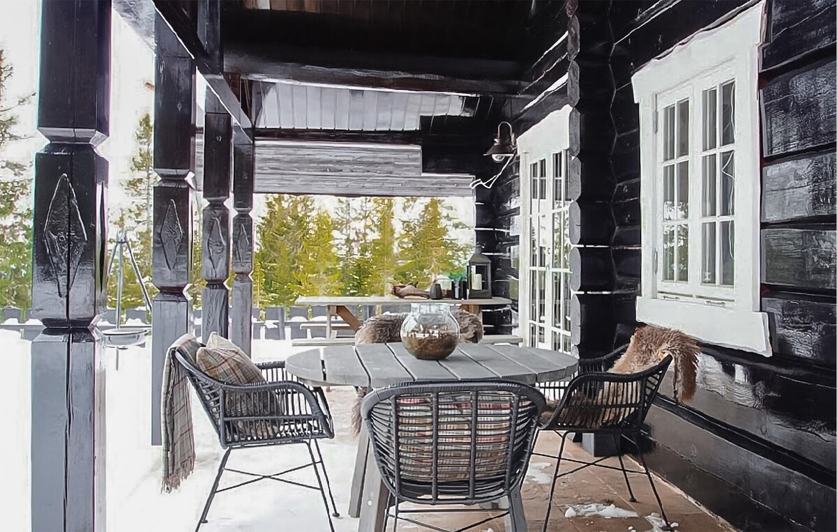Tolglann cábáin iontach le hiarscríbhinn ar Sjusjøen