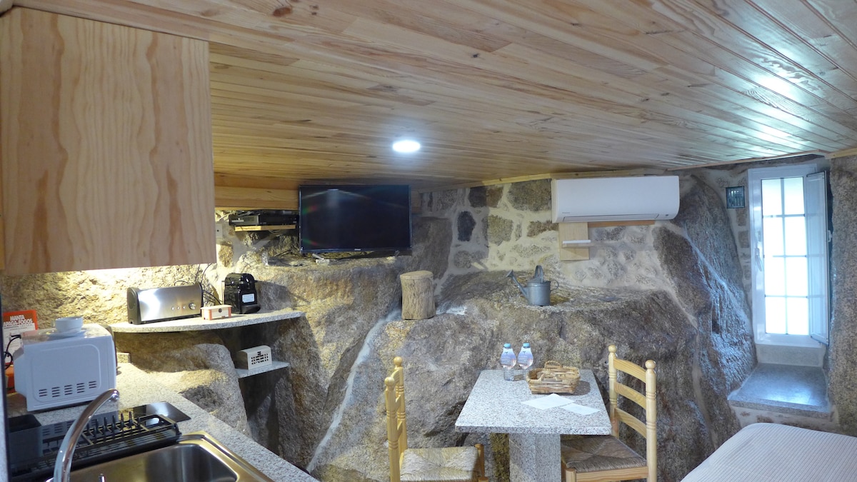 Is teach/uaimh cloiche ársa eisiach agus sómasach é seo (2 dhuine ar a mhéad), bhí an uaimh seo de réir roinnt tuairimí ina gcónaí cheana féin ós rud é go raibh amanna réamhstairiúla ann nuair a bhí eilifintí san Eoraip (mamaigh), bison, rhinos, leoin, srl.. Maisithe le troscán bunaidh ón 17ú agus ón 18ú haois, a cuireadh isteach sa "chuid is mó Portaingéalach" agus gan ach sráidbhaile sa Phortaingéil, Monsanto.