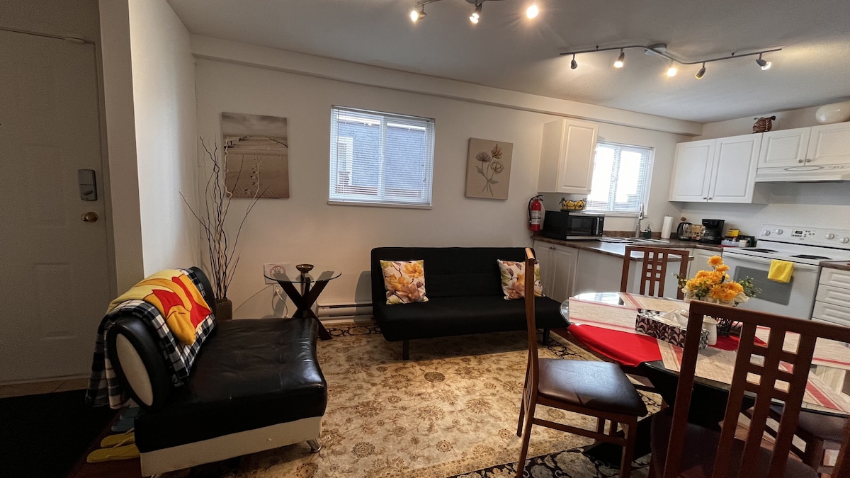 Svuít nua - aimseartha só trá 800 troigh chearnach. Bealach isteach príobháideach, glan geal aerach, cistin iomlán, téamh ar an urlár, teallach gáis, teilifíseán cliste (Netflix), Codladh 2, leaba na Banríona le 2ú teilifíseán cothromscáileáin, deasca oibre. Wi - Fi, níochán, suíomh uas - scála ciúin, PÁIRCEÁIL áisiúil ar an láthair, téigh ag spaisteoireacht 4 -5 nóiméad chuig an bhfarraige agus bain sult as páirceanna agus tránna neamhphlódaithe, bialanna iontacha agus siopadóireacht den chéad scoth ag Park Royal. Féach ar ghrianghraif a tógadh ó urláir uachtaracha (gan svuít) a thaispeánann an áit. Rochtain éasca ar Downtown ar bhus/charr.