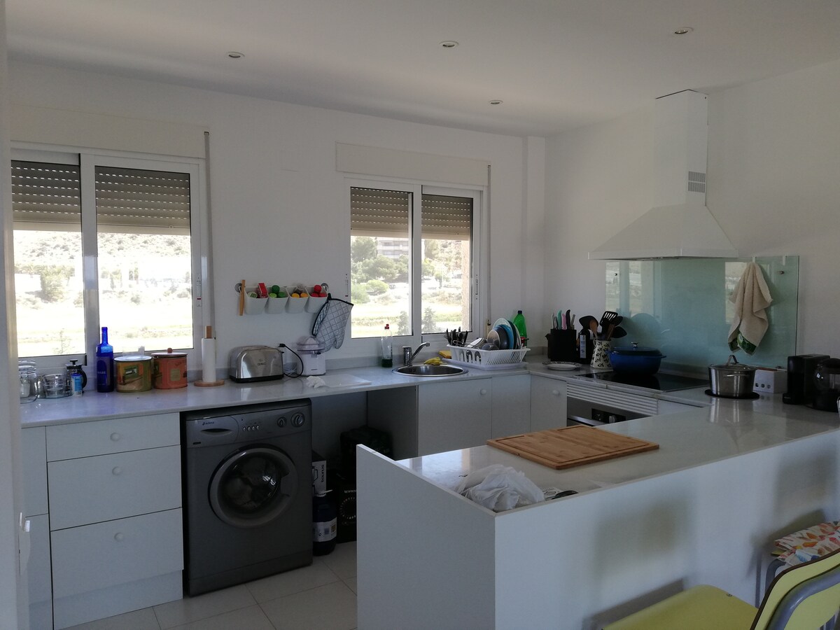 Villa álainn 2 sheomra leapa, 2 villa scoite seomra folctha, le spá, gairdín agus ardán fairsing dín. suite go sármhaith ar Ghalf La Torre, fad siúil chuig na bialanna, na linnte agus na siopaí. Tá Murcia ar cheann de na réigiúin is grianmhaire san Eoraip agus tá na ceantair máguaird lán de ghníomhaíochtaí, cibé an bhfuil tú ag lorg saoire teaghlaigh, saoire ghníomhach, saoire gailf nó díreach ag iarraidh a scíth a ligean ar an trá. Seo rud éigin do gach duine agus is é mo theach do lóistín foirfe chun taitneamh a bhaint as. Thig leat fiosrú a dhéanamh.