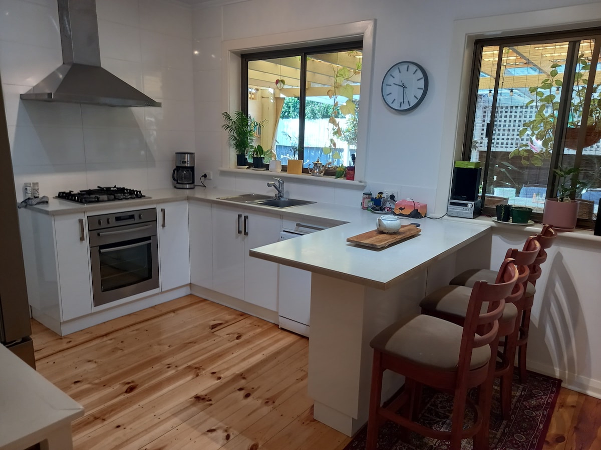 Tá ár dteach gar do pháirceanna, pictiúrlann, bialanna agus siopaí, agus 20 nóiméad chuig an trá. Taitneoidh ár dteach go mór leat mar gheall ar an spás lasmuigh, an linn snámha, an chomharsanacht chiúin, agus gar don chathair (siúl 3 nóiméad chuig stad bus), an trá agus na Adelaide Hills . Tá ár stiúideo go maith do lánúineacha, eachtránaithe aonair, agus lucht siúil gnó. Is stiúideo féinchuimsitheach é i suíomh gairdín ina bhfuil rochtain phríobháideach agus úsáid linn snámha agus beárbaiciú gáis chomh maith le bricfeasta ar stíl ilchríochach.