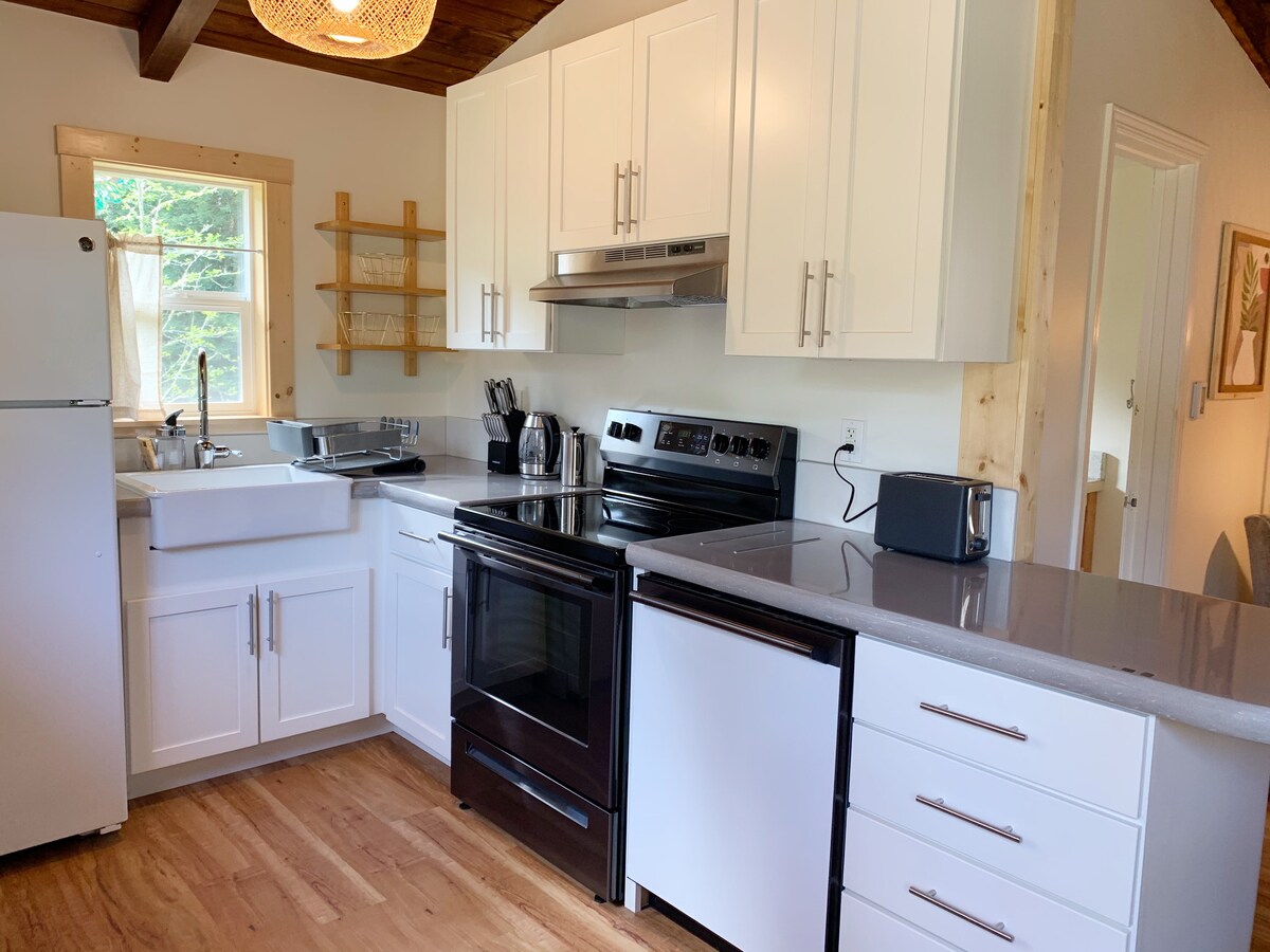 Bíodh fanacht álainn agat ag ár bhfolachán álainn atá míle amháin ó Glass Beach, Pudding Creek Beach agus lár na cathrach Fort Bragg! Tá teachín suite ar phlota cúlráideach le príobháideacht iomlán, bealach isteach geataithe agus páirceáil. Lig do scíth le roinnt fíona dea - mhéine ar an bpóirse agus glac isteach luí na gréine agus oícheanta réaltaí ón atmaisféar álainn ar thalamh feirme. Taobh istigh tá seomra suí álainn le fuinneog mhór, cistin iomlán, uisce toibre nádúrtha glé, tolg leapa a tharraingíonn síos, seomra leapa príobháideach le tocht Dreamcloud, leabhair indie/ealaíne.