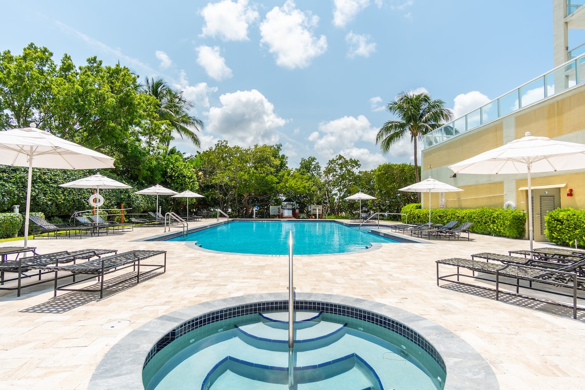 Athchóirithe le déanaí, in aice le Páirc na Bioscáine, suite go lárnach le gach compord ón mbaile! - 4 mi go Surfside & Bal Harbour Beaches, 11 mi go Miami Beach,14 mi go South Beach - In aice le nithe móréilimh Miami, músaeim & Wynwood Arts District - 7 míle go dtí Aventura Shopping Mall, gar do shiopaí grósaera, caiféanna & bialanna - 2 spás páirceála saor in aisce os comhair & linn snámha chomhroinnte ag an réadmhaoin. - Luas iontach Wi - Fi agus spás oibre/deasc & cathaoir thiomnaithe atá oiriúnach do ríomhaire glúine.