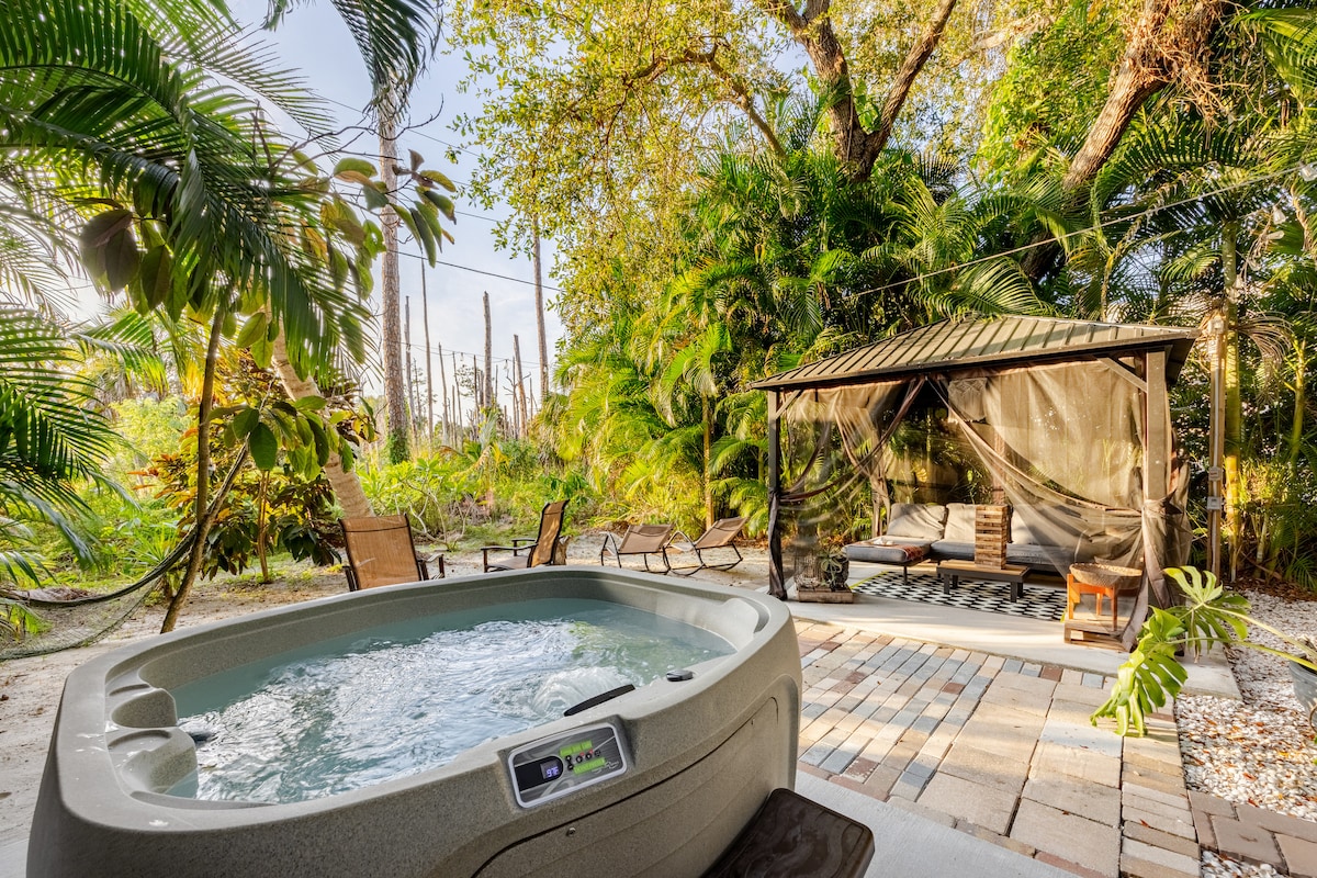 Fáilte chuig do theach príobháideach féin cois uisce ar bheart príobháideach gar do thránna Napoli! Tá radharc mór ar murlach trópaiceach, síochánta sa teachín beag seo. Iasc agus cadhc díreach ón gclós cúil! Dhá Cadhc & rothar curtha ar fáil! Lush, suíomh trópaiceach agus go leor den saol fiáin le feiceáil freisin! Lig do scíth ar an bpóirse cúil ina mbíonn gaoth i gcónaí! Téigh ar aghaidh chuig Gairdíní na Lus nó ceann de na bialanna iomadúla atá gar duit! Tiomáint ghearr chuig tránna cáiliúla 5th Ave & Naples! Go leor rudaí spraíúla le déanamh in aice láimhe!