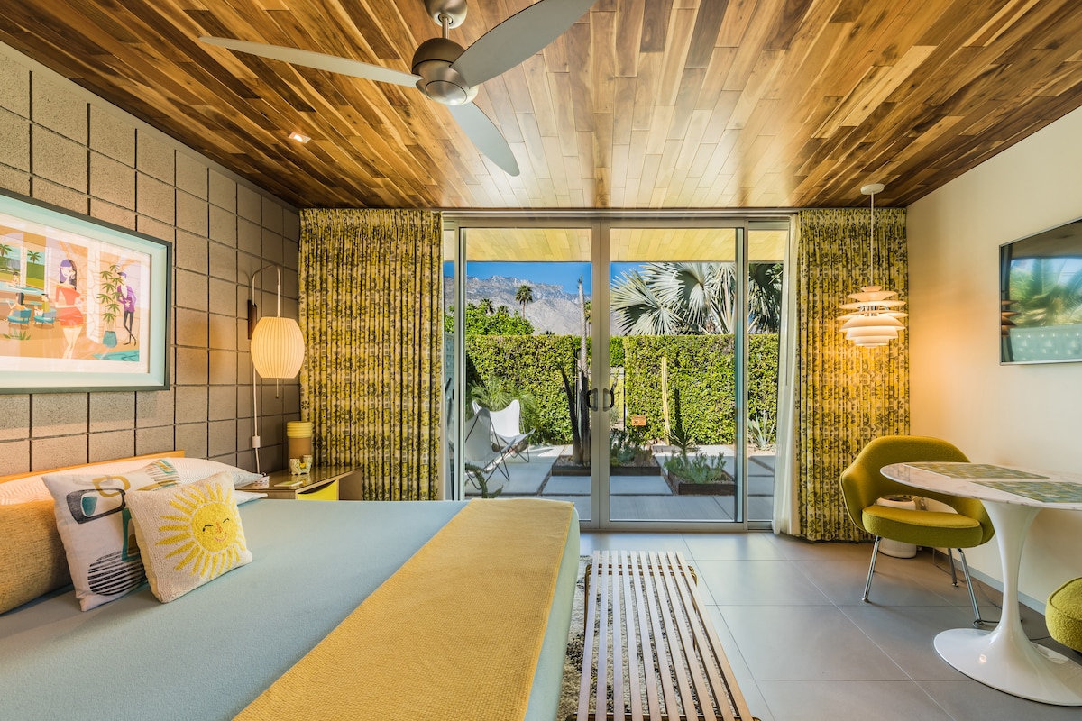Lonnaithe i lár Palm Springs, tógadh an teach aíochta príobháideach i lár an chéid nua - aimseartha in '71 agus rinneadh athnuachan air chun ár dteach'60 'a mheaitseáil. Níl ann ach seomra óstáin (270 troigh cearnach) le bealach isteach príobháideach, paitió, poll dóiteáin beag, áit tolglainne, agus cithfholcadán príobháideach lasmuigh. Tá cistinéad beag (gan cócaireacht) ann. Iontach do lánúineacha singile & lánúineacha. Daoine fásta amháin. Tá rochtain ar an bpríomhchlós, linn snámha chomhroinnte & spá nua san áireamh! LGBTQ faoi úinéireacht/oibriú. Tá bailiúchán iontach de thithe lár an chéid sa chomharsanacht!