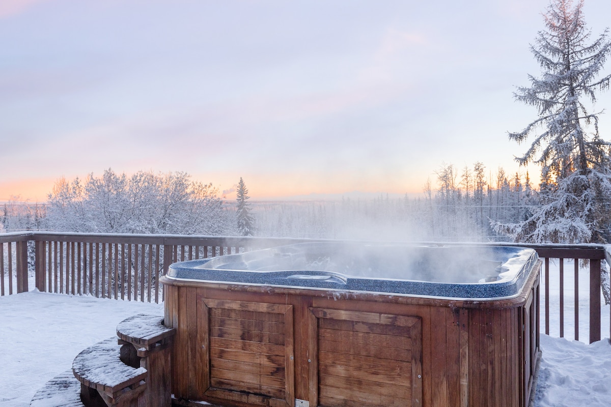 Bain sult as roinnt ama ar shiúl ón fhuadar agus ón bhfuadar ag an gcábán saoire uathúil suaimhneach seo. Suite díreach taobh amuigh de Fairbanks, ar bhóthar coinnithe le rochtain ar feadh na bliana, tá na luxuries go léir agus fíor - mhothú Alasca sa chábán seo. Bain sult as an AURORA agus tú ar an bpóirse tosaigh, ag ól do chócó te. Téigh ar thuras síos an bóthar le haghaidh snámh sna spriongaí te nó siúlóid speisialta ag Carraigeacha na nAingeal. Pleanáil le haghaidh turas sled madra ag teach tábhairne comharsanachta nó téigh go dtí na cnoic le haghaidh roinnt snowmachining nó 4 roth.