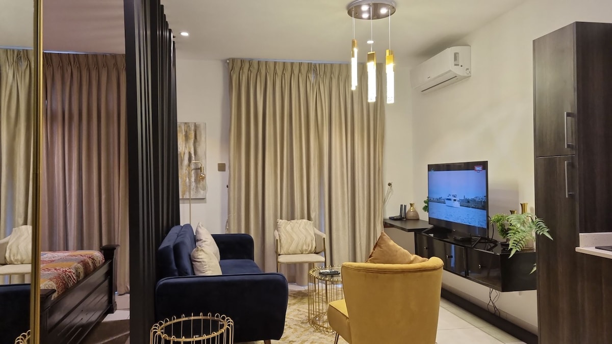 Tá an áit speisialta seo gar do gach rud, rud a fhágann go bhfuil sé éasca do chuairt a phleanáil. Tá sé maisithe go hálainn. Breathnaíonn an seomra thar an linn snámha. Tá gach saoráid sa stiúideo i stíl an óstáin seo. Bheadh glanadh a dhéanamh trí huaire sa tseachtain. Tá an t - aerfort Idirnáisiúnta 10 nóiméad ar shiúl. Rochtain éasca ar thithe tábhairne agus ar bhialanna.