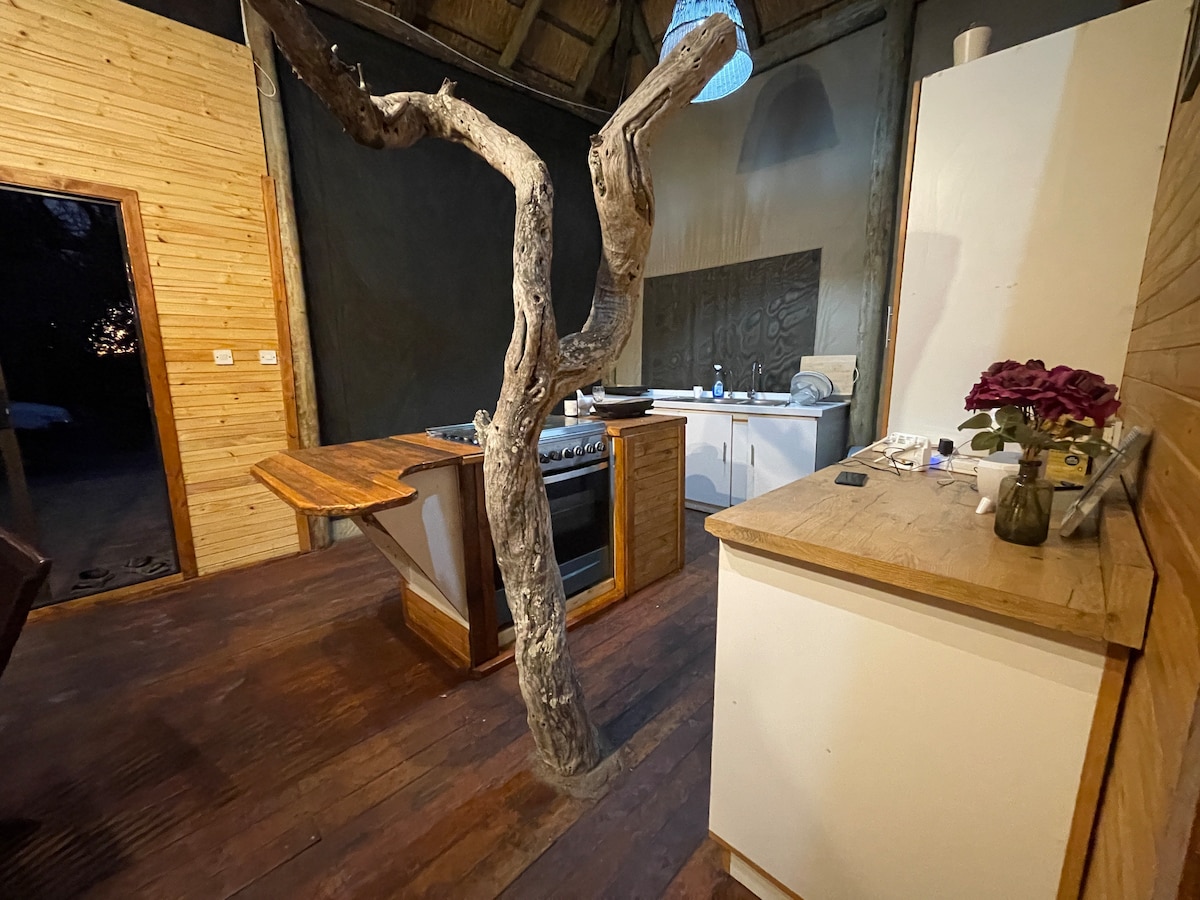 Uathúil agus suaimhneach, faoi scáth crann mór Jackalberry. Ag imeall ár murlaigh álainn Samochima, téann gaoth fhionnuar isteach trí fhuinneoga uige i gcónaí. San oíche d'fhéadfadh hippo a bheith ar féarach taobh amuigh agus ulchabhán Iascaireachta an Pel ag grunts cúpla clós ar shiúl. Tugann ábhair thógála orgánacha - cré, giolcacha agus canbhás, mothú safari ach le saoráidí breise féinfhreastail, leictreachais agus Wi - Fi. Fad siúil chuig roghanna siamsaíochta eile, m.sh. turais bháid, bialann agus beár, ar féidir iad a shocrú.