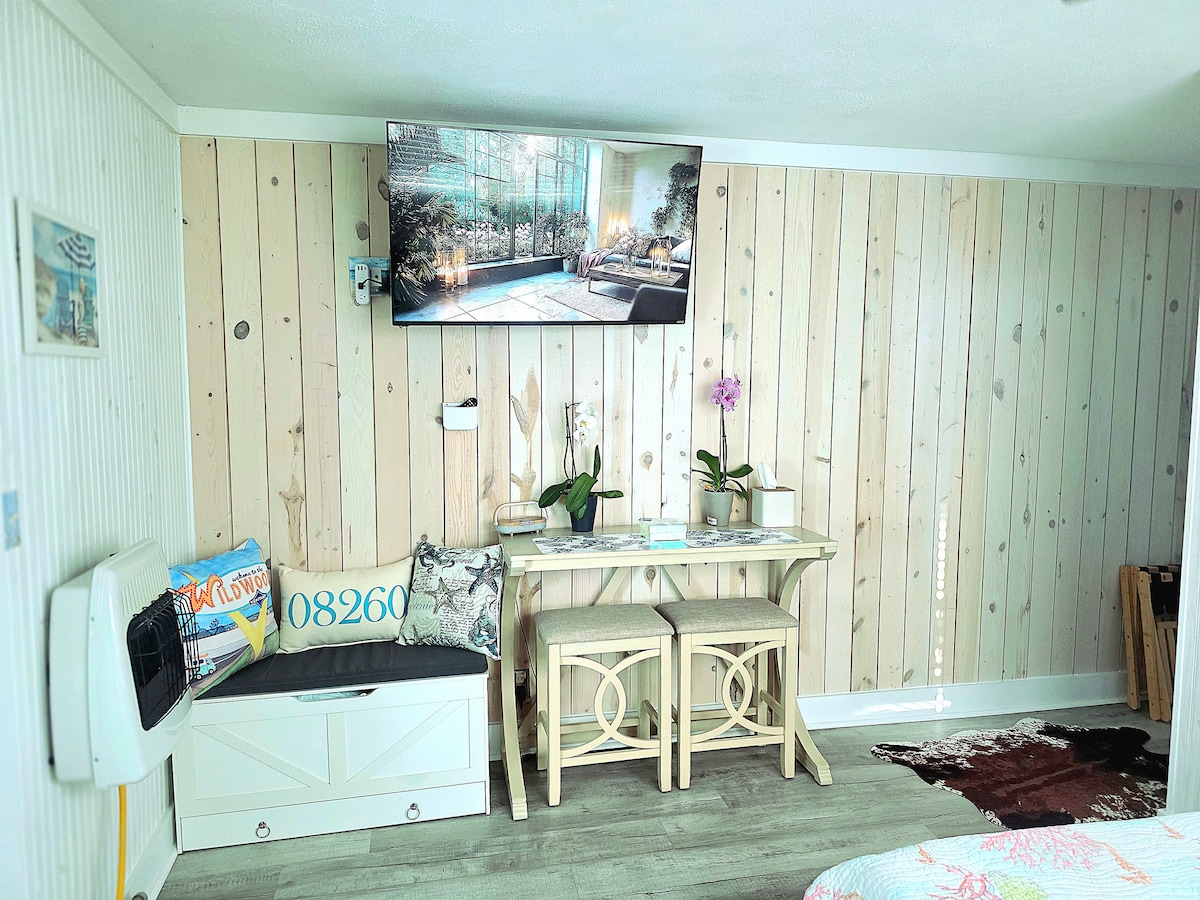 Árasán beag iontach - 2 sheomra leapa! Pobal ciúin le linn snámha agus páirceáil. Go díreach trasna na sráide ón aigéan, 7 mbloc ón gclárchosán, agus achar siúil go beáir agus bialanna N Wildwood. Bord agus cathaoireacha díreach taobh amuigh den doras tosaigh! Go leor tolgairí, táblaí agus 2 ghríoscán timpeall na réadmhaoine. Seomra folctha nua - athchóirithe. Fágfar an eochair sa bhosca glas - aonad 105. Tabhair leat do línéadach tí féin nó nigh agus déan leapacha sula bhfágfaidh tú é, le do thoil. Meitheamh ar a laghad -3 oíche Iúil agus Lúnasa ar a laghad - 4 oíche