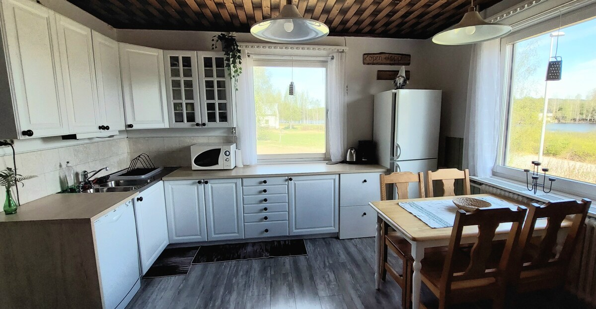 This is a comfortable modern house in the nature overlooking a beautiful calm river Luleälv. Panorama windows, large terrace with views and lots of light. Calm beautiful area less than 1 hour from higher mountains and 10 minutes in car for shops. Very private perfect for nature excursions, kayak, skiing, cross country or slalom or just relaxing in the middle of the nature and enjoying wildlife and nature. It´s a dream from children and safe, also perfect for well behaved dogs.