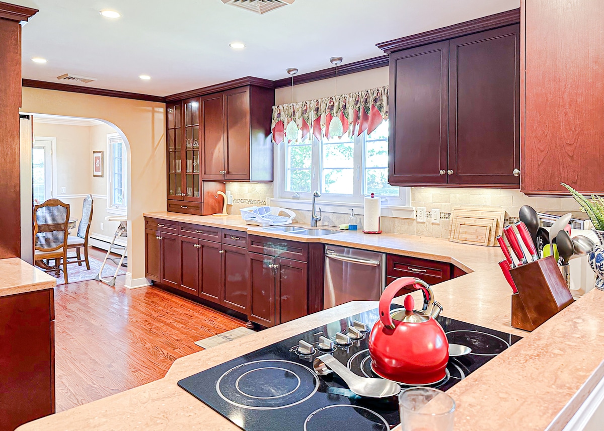 Éalaigh go dtí an teach fairsing 4BR, 2BA seo in Norwich, CT! Níl ach 3 nóiméad go Mohegan Sun agus 18 nóiméad go Foxwoods, tá sé foirfe do ghrúpaí nó do theaghlaigh suas le 13 nóiméad. Bain sult as cistin nua - aimseartha, seomra suí teolaí ina bhfuil dhá tholg, áit itheacháin, tábla poker, agus suíocháin lasmuigh ina bhfuil beárbaiciú gáis. Tá trí sheomra leapa thuas staighre, ceann ar an bpríomhleibhéal, leis na compord go léir a theastaíonn uait: meaisín níocháin/triomadóir, neart páirceála, agus siopaí agus bialanna caife in aice láimhe. Cuir do shaoire ghearr in áirithe anois!