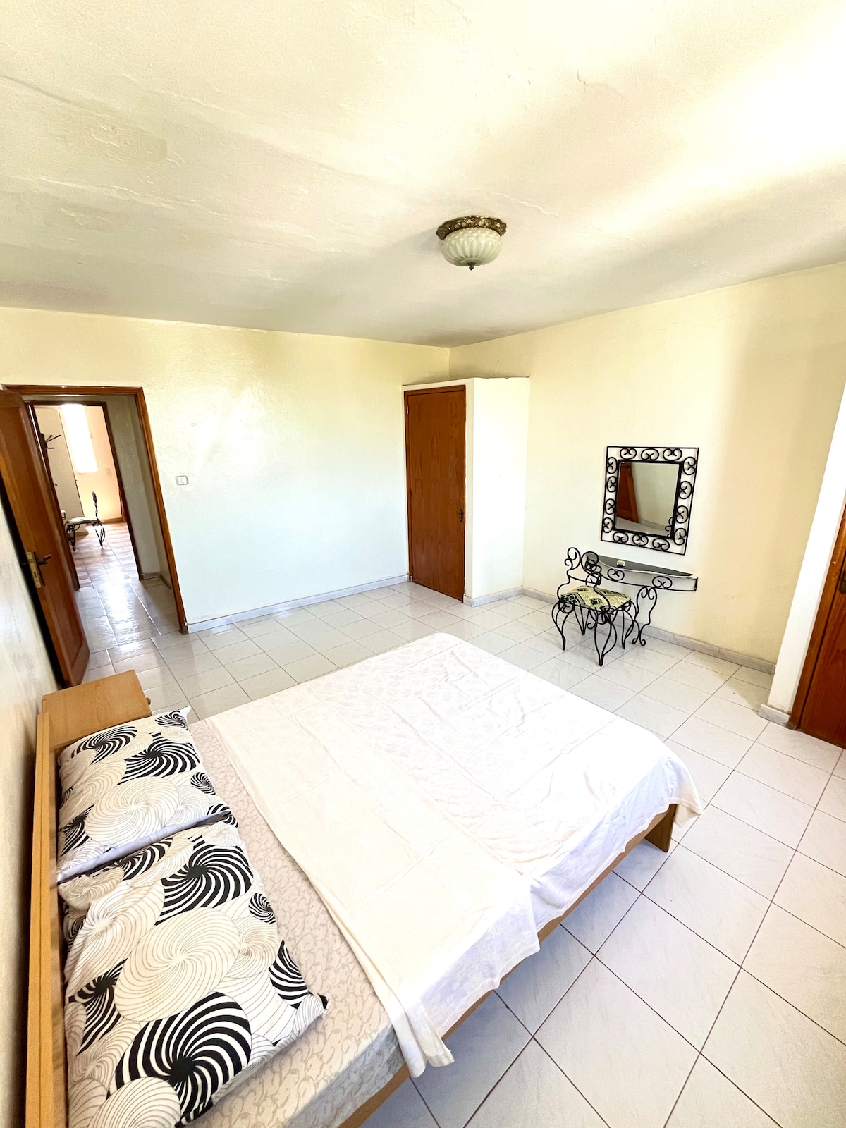 Troscán T3 de 120 m2,atá suite i gcrios glas slán Ambasáidí agus gníomhaireachtaí na Náisiún Aontaithe. Ar shráid Sidi Mohamed Abbass comhthreomhar leis an ascaill mhór a théann tríd an gcathair go dtí an fharraige. Chomh maith leis sin gar do bhialanna lena n - áirítear an clú ar a cháilíocht "La Palmeraie ", cógaslanna... Ar fáil duit le haghaidh earraí beaga grósaera, seirbhís bhuan ag fáiltiú an fhoirgnimh.