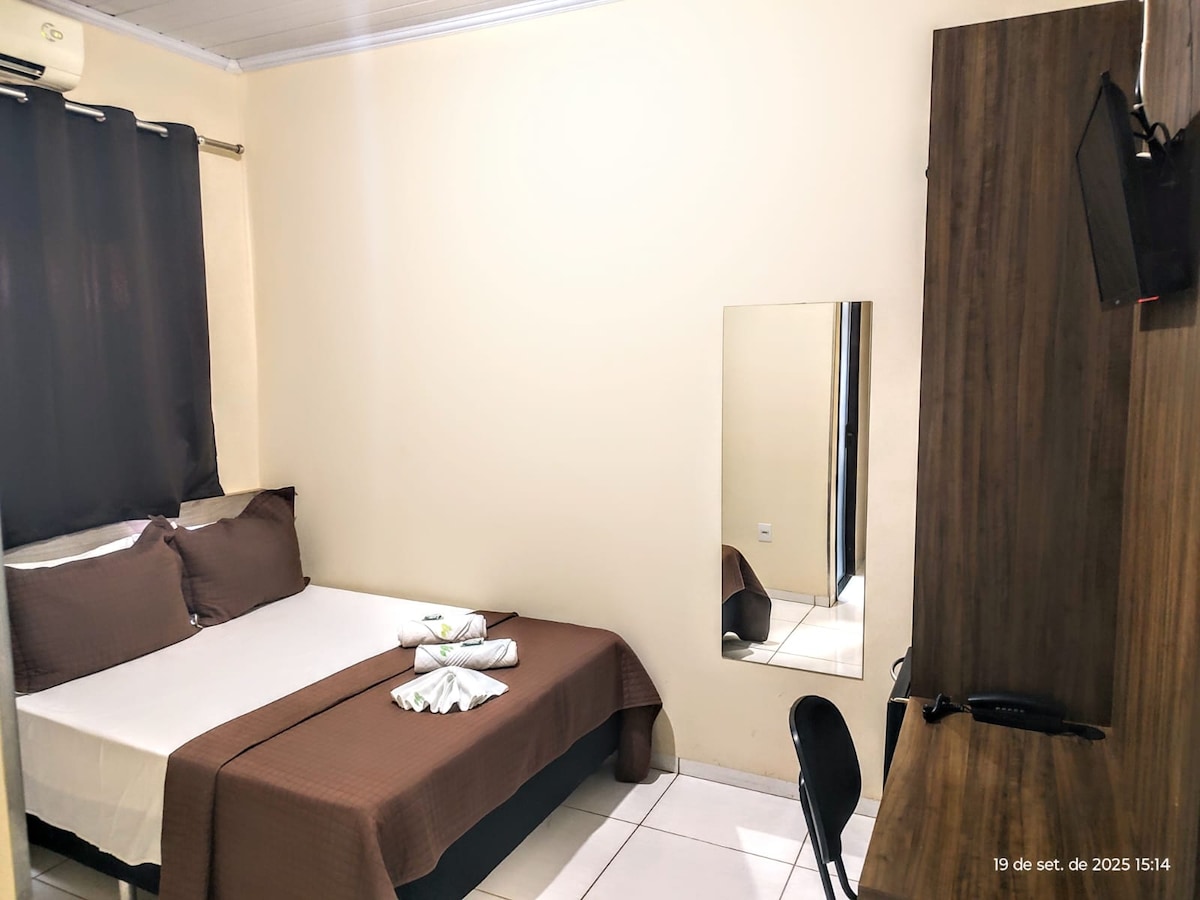 Glac leis an tsimplíocht san áit chiúin seo atá suite go maith. Stiúideo suite i réigiún lárnach Nova Andradina. In aice leis na beáir, na bialanna is fearr. Tá sé trí bhloc ó mhargadh Abevê, ó chógaslann agus ó dhá bhloc ó UEMS.