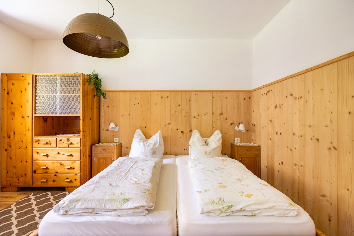 Suite 3 -4 km taobh amuigh ó Downtown of Bolzano City. 680 m. a.s.l. Inrochtana i gcarr AMHÁIN, cuireann ár suíomh radhairc thar na bearta agus rochtain ar ghníomhaíochtaí lasmuigh ar fáil. Éalaigh ó chíor thuathail shaol na cathrach agus athluchtaigh d'anam le fanacht inár n - árasán cluthar sléibhe. Dúisigh le radhairc iontacha de na Dolomites agus fuaim na n - éan ag cíoradh. Bain sult as fánaíocht, rothaíocht agus iniúchadh a dhéanamh ar shéadchomharthaí dúlra UNESCO. Sip fíon ar an mbalcóin faoi spéir lán de réaltaí. Tá an Ritten Card san áireamh sa phraghas (!)