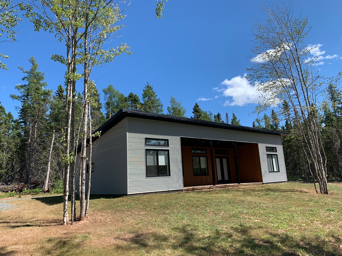 Moilligh agus aimsigh áit dhraíochta atá lán de chroíúlacht, de dhraíocht agus de shaoráidí sainiúla. Cábán chic, timpeallaithe ag trí thaobh le coillte, le radharc iontach ar Ardchríoch Cape Breton. Díreach taobh amuigh de Chonair cháiliúil Cabot, bloic ón bhfarraige, cé go bhfuil siad fós laistigh den bhaile, taitneamh a bhaint as ciúin agus áisiúlacht. Adhmad fired tub te agus oigheann pizza. (Adhmad curtha ar fáil) Siúlóid cúig nóiméad chuig bialann agus beár álainn L'abri, ach beagán níos faide ó ionad ceoil The Doryman.