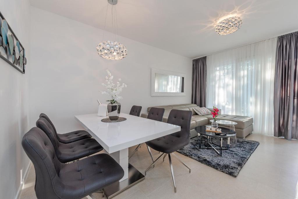 Lóistín só atá ceaptha go foirfe sa cheann scríbe is fearr leat sa Chróit. Soláthraíonn Villa Adriatic Bay 5* gach rud a theastaíonn uait le haghaidh meascán idéalach de scíth, scíth agus spraoi. Tá an villa suite in aice le lár na cathrach, na tránna is áille, clubanna, beáir, bialanna agus siopa grósaera a bhfuil tóir orthu. Níl lár na cathrach ach 7 -10 nóiméad ar shiúl na gcos, mar sin níl aon charr ag teastáil. Tá Zrce Beach 2km ón lóistín, agus tá an stáisiún bus 400m ar shiúl.