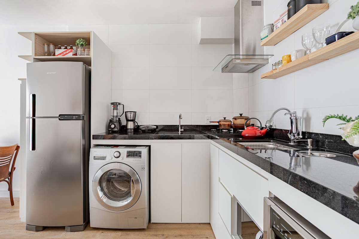Árasán athchóirithe, tionscadal oifige íosta Arq (@minimo arq br). Soláthraíonn an spás go leor agus comhtháite, le soilsiú nádúrtha agus aeráil den scoth, compord agus folláine. Le stíl íostach, pribhléidí sé na bunriachtanais. Tá an balcóin mhór, úr i gcónaí, ag breathnú amach ar limistéar buan glas, athchóirithe, ag cothabháil úrnuacht an fhoirgnimh. Do dhaoine a bhfuil timpeallacht nua - aimseartha, chompordach, ghlan agus iomlán acu. Oiriúnach le haghaidh fanacht gearr agus fada.