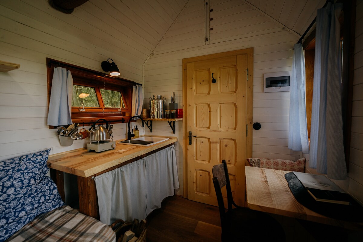 Is é Hruška an teachín is mó, tá an seomra leapa ar an urlár uachtarach comhlánaithe le patýrko eile le codladh, a thaitneoidh go háirithe le páistí. Spás oscailte fairsing, giúis, beith, cistin mhaith le sorn teallaigh agus lochtán, cad eile atá ag teastáil… Tá an teachín foirfe do theaghlach 4 duine, ach is féidir le suas le 5 duine fanacht go compordach ann. Thógamar na tithe le grá, le béim ar dhearadh nua-aimseartha íostach, le comhchuibheas leis an dúlra. Suite os cionn gleannta álainn na Šumava. Tar agus bain sult as an suaimhneas agus an tsuaimhneas le radharc iontach ar na cnoic máguaird.