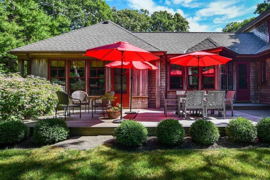Is breá liom an chomharsanacht seo! Tá sé ciúin, síochánta, agus níl ach siúlóid ghearr chuig Tashmoo Beach nó Downtown Vineyard Haven agus an bád farantóireachta. Tá go leor spáis lasmuigh sa teach ina bhfuil oigheann píotsa, poll dóiteáin agus deiceanna adhmaid féin. Tá áiteanna deasa suí in aice leis an bpoll dóiteáin, ar an deic íochtarach agus ar an deic uachtarach. Siúl tríd an gcúlchlós, síos bóthar salachair agus bí ag an uisce i gceann cúig nóiméad. Tuáillí trá san áireamh! Neart doirse gloine sleamhnáin agus GO LEOR solais. Vitamix san áireamh!