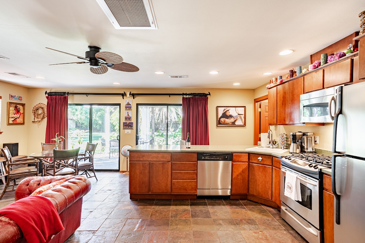BEO IN ALOHA SONOMA! Bain sult as an Getaway trópaiceach Haváíoch seo i gCroílár Thír an Fhíona Sonoma. Is baile beag iontach é Sonoma le hithe, le hól, le siopadóireacht, le siúl, le rothar, le siúl, le snámh agus le do scíth a ligean. Tá an oiread sin le déanamh anseo! Cuirfidh an teachín seo i riocht saoire tú chomh luath agus a thiocfaidh tú. Lig do scíth timpeall na linne, bain sult as leabhar maith, siúil isteach sa bhaile mór nó faigh seirbhís cairr ar cíos agus tabhair cuairt ar chuid de na fíonlanna iontacha in Sonoma - Neapa - Airander Valleys. TAR AGUS BAIN SULT AS ALOHA I SONOMA!