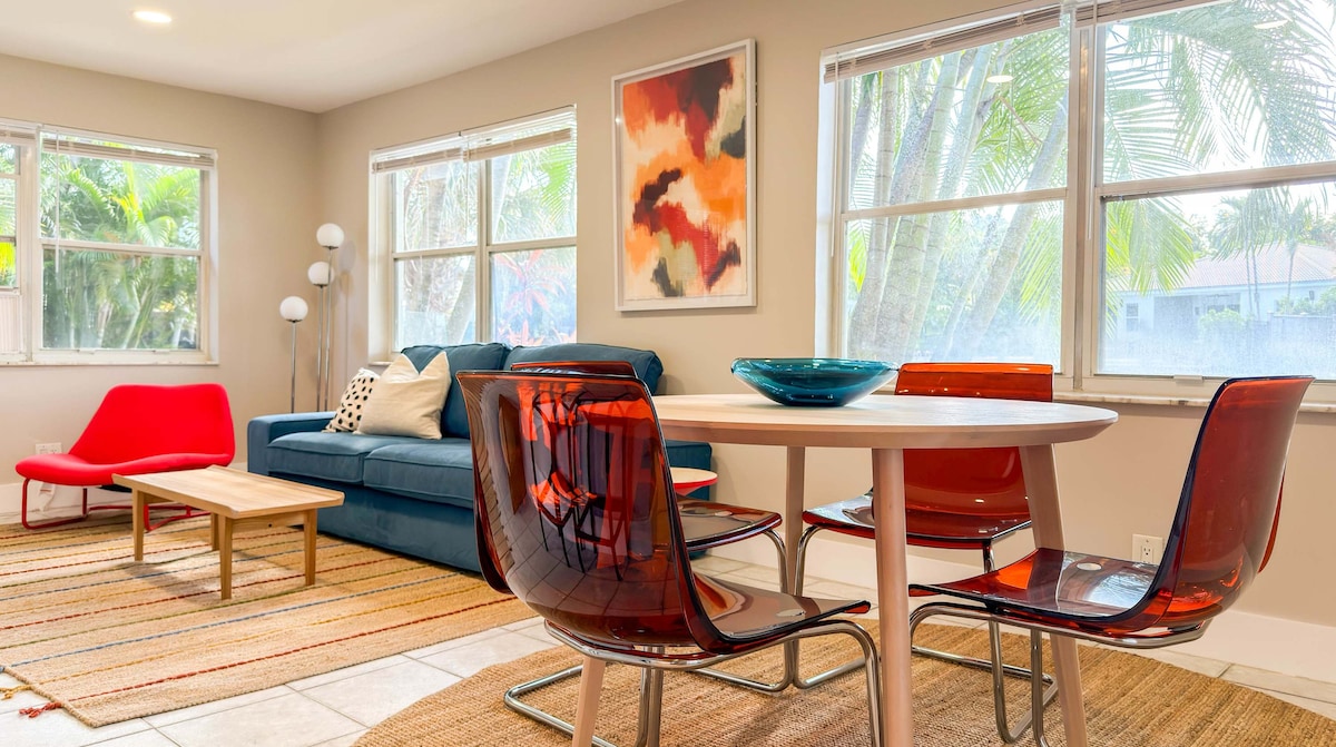 Bainfidh tú sult as an teach beag bídeach síochánta álainn seo. Áit fhoirfe le ceangal a dhéanamh leat féin. Tá an 🏡 beag bídeach seo suite i gcomharsanacht bhríomhar Oakland Park nóiméad ar shiúl ón gcuid is fearr atá le tairiscint sa cheantar. 🌴Níos lú ná 15 nóiméad ón trá – cuir an ghrian ar maos, téigh ag snámh, nó bain sult as an gclárchosán bríomhar. 🏙️ Tiomáint thapa chun iniúchadh a dhéanamh ar Las Olas Boulevard, músaeim, & bia cois uisce. ☀️Gabh roinnt gathanna nó lig do scíth sa phaitió. Troscán agus gríoscán compordach lasmuigh do do thaitneamh.