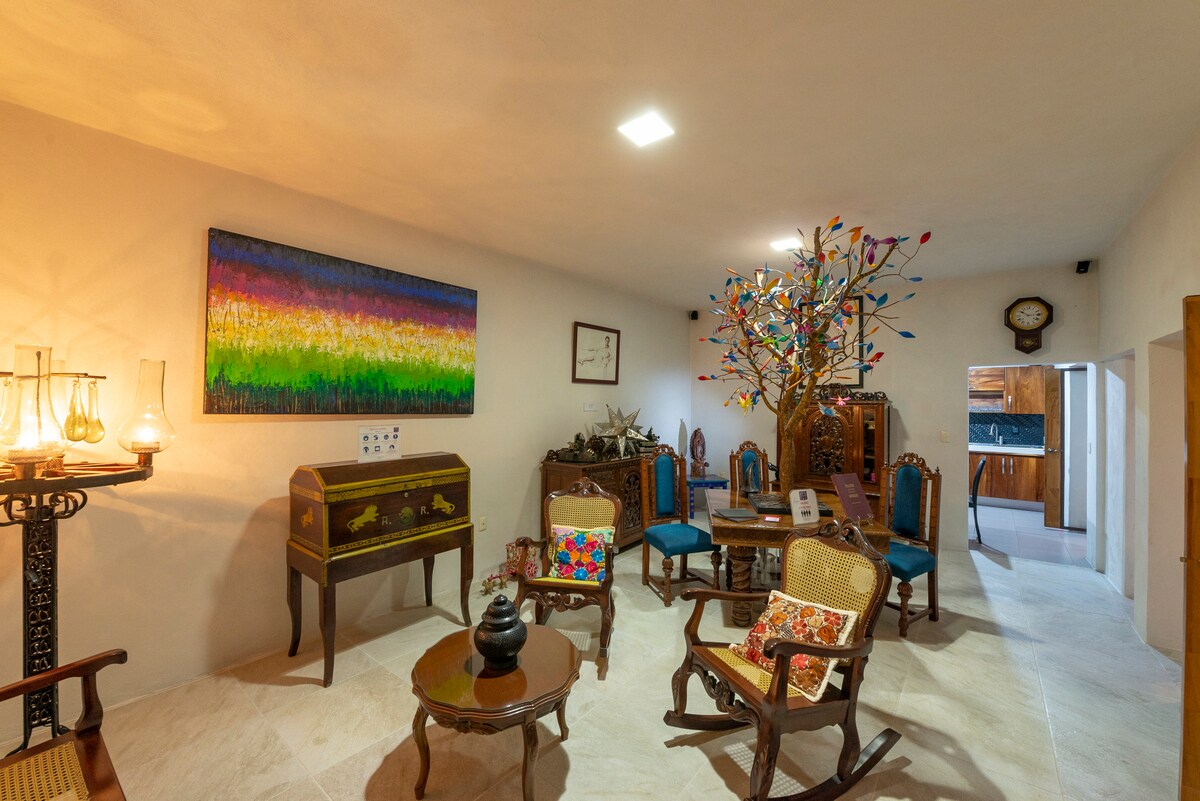 Lóistín compordach le hardán agus aerchóiriú saor in aisce a dhéanann comhcheol teaghlaigh le chéile le teagmháil Oaxacan, cosúil le dathanna gleoite ealaíne agus traidisiúin Oaxacan. Suite 15 nóiméad ón aerfort, 5 nóiméad ó na cearnóga is mó '' Plaza Oaxaca '' agus 'Plaza Del Valle ’ agus siúlóid 15 nóiméad go dtí an t - ionad stairiúil. Tá rochtain neamhspleách ar an teach trí chéim thart ar 15 chéim a dhreapadh.