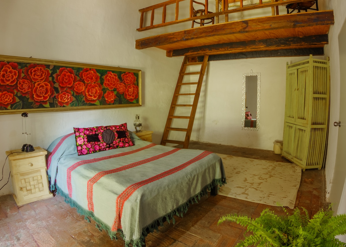 “Los Alebrijes” se ubica en el Centro Histórico de la ciudad de Oaxaca, está decorado cuidadosamente con un estilo rústico contemporáneo, localizado a tres cuadras del andador turístico y a ocho cuadras del zócalo de la también conocida como “La Verde Antequera”. En un entorno totalmente privado, en planta baja cuenta con áreas de estar, comer, y una cocina equipada, en la planta alta se encuentra una recamara con camas matrimonial e individual, y un baño con vestidor.