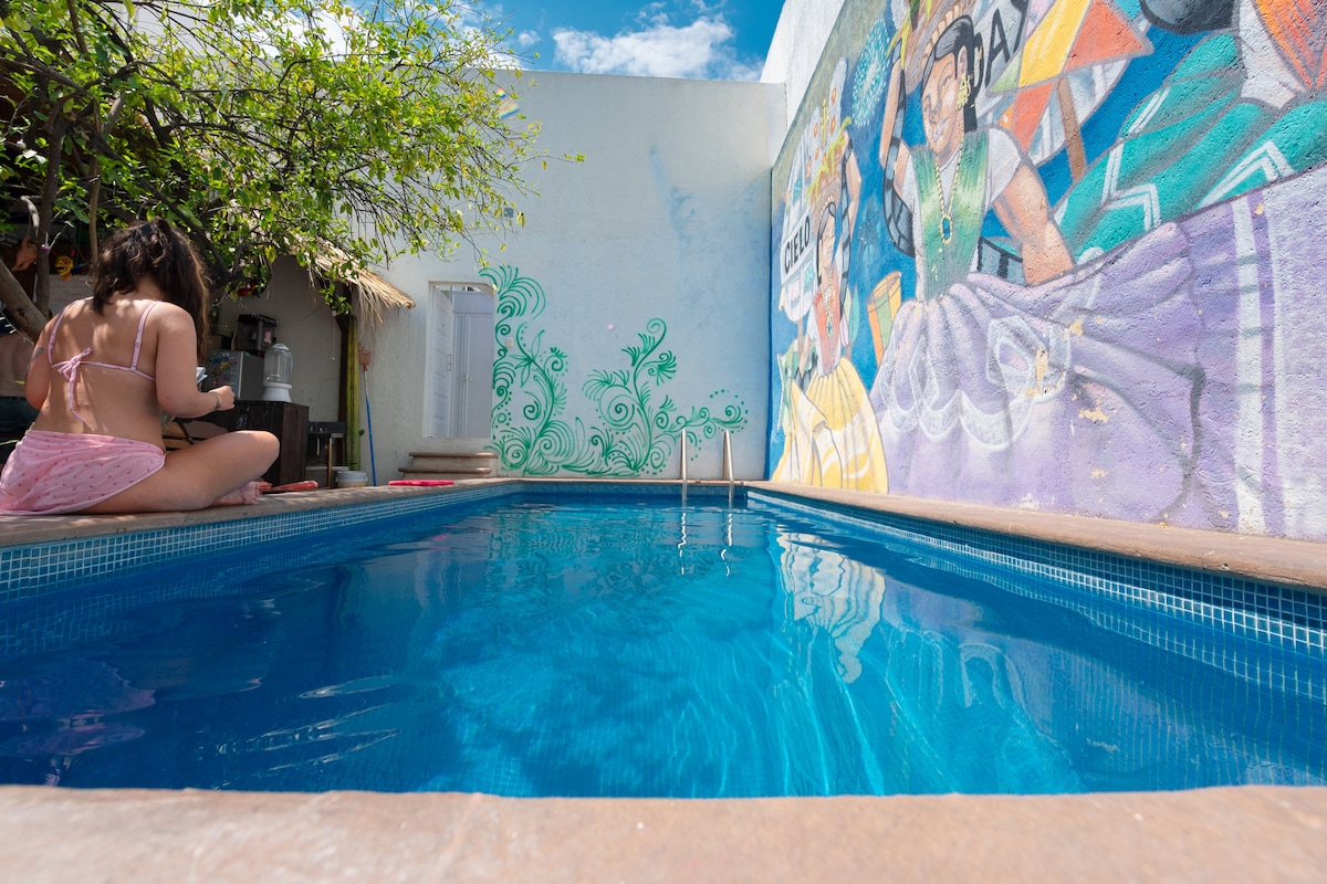 Fan i lár an aicsin san áit uathúil seo atá suite AR thailte Chlub Linn Snámha Confetti, ina bhfuil beár snámha téite, poll dóiteáin agus jacuzzi. Ní chaillfidh tú aon pharáid nó féile, mar go bhfuil Confetti suite go háisiúil an - ghar do Láithreán Seandálaíochta Mitla agus Mitla Centro araon. Tá an linn snámha agus na tailte go hálainn de ló, ach sa tráthnóna, nuair a thagann na soilse ar aghaidh, spréachann Confetti Pool CLUB!