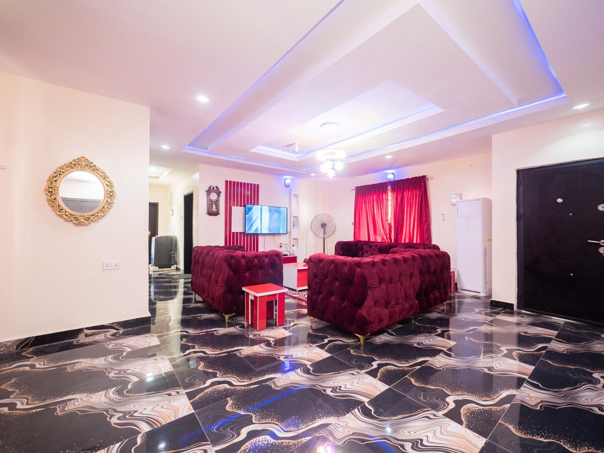 Tá an t-árasán álainn seo suite i dtimpeallacht shuaimhneach shlán agus cuireann sé fáilte roimh aíonna. Tá rochtain ag aíonna ar sheomraí/seomra suí atá deartha agus maisithe go hiontach, cistin nua-aimseartha, sruthú Netflix/Prime, idirlíon neamhtheoranta, agus soláthar cumhachta 24/7 (FÉACH RIALACHA AN TÍ MAIDIR LE SÓRAS LEICTREACHAIS sula ndéanfaidh tú áirithint). Cuirimid seirbhísí fáilteachais den scoth ar fáil dár n-aíonna, rud a fhágann go bhfuilimid foirfe do d'fhanachtaí gearrthéarmacha agus fadtéarmacha!