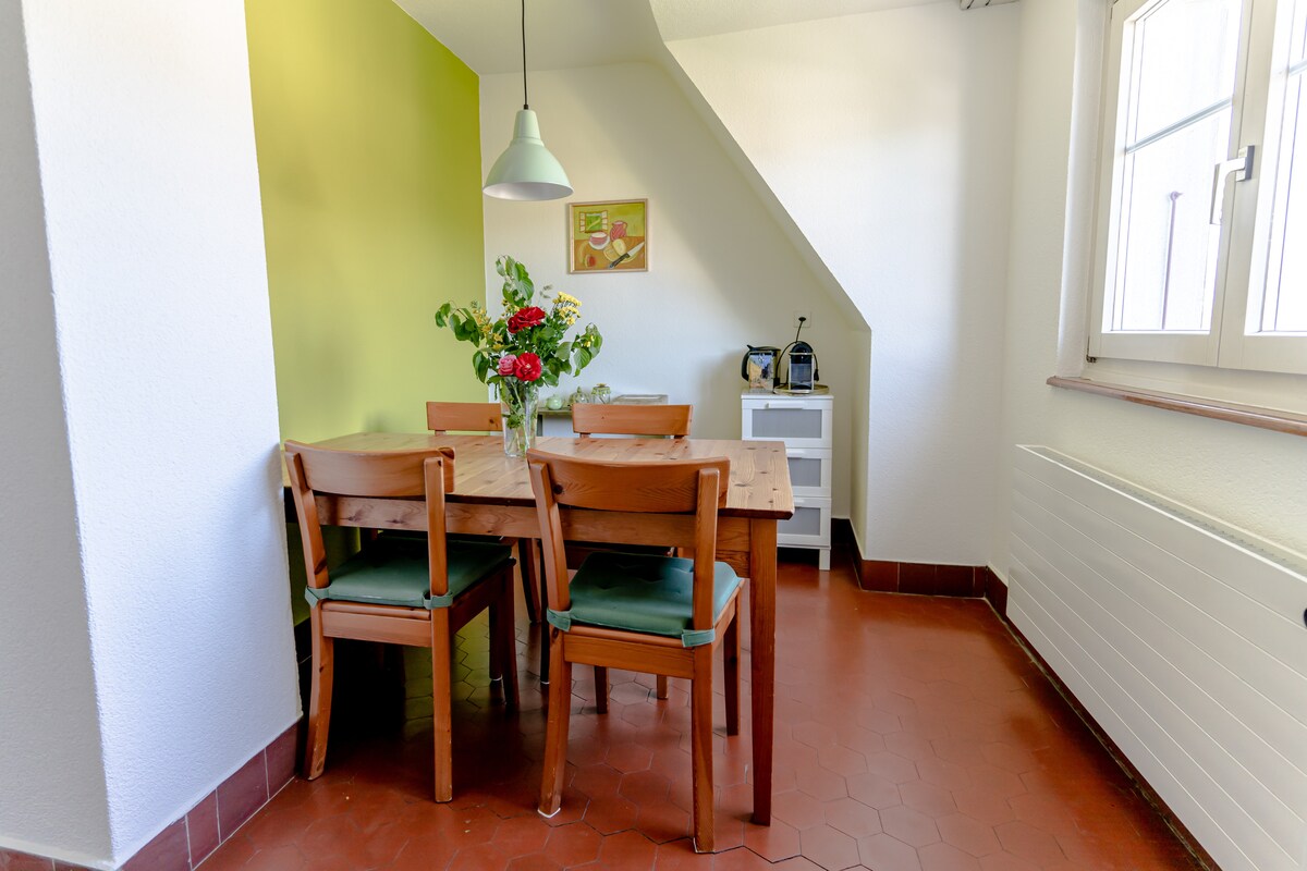 Beidh tú buíoch as an suíomh ciúin agus as an dea - nasc iompair phoiblí. I 20 -30 nóiméad. ag stáisiún Basel. Tá an seomra atá feistithe go galánta leis an leaba chompordach (140 x 200 cm) mar chuid den lóistín gleoite seo. Is féidir taitneamh a bhaint as bricfeasta ildánach agus/nó dinnéar simplí sa ghairdín teolaí nó sa seomra suí. (Féach tuilleadh sonraí ábhartha). Roinntear an seomra folctha le 2 chónaitheoir.