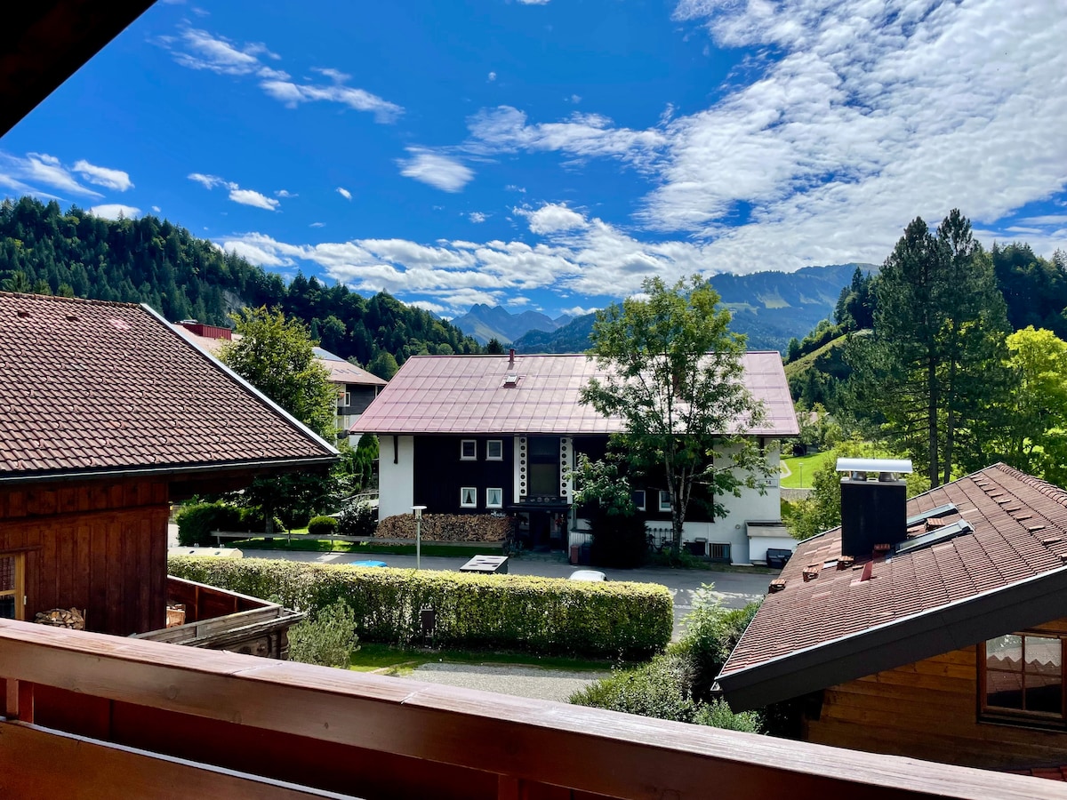 I lár na sléibhte in aice le Oberstdorf le linn snámha agus sabhna, tar agus bain sult as! Fanfaidh tú in árasán deas nua - aimseartha ina bhfuil 35 m² de spás maireachtála, do chistin bheag féin, seomra folctha nua agus balcóin ar an dara hurlár. Tá an coimpléasc árasán le linn snámha agus sabhna faoi dhíon sa teach, sciáil agus siléar rothar, an - chiúin agus coinnithe go maith. Díreach os comhair an tí, téann an bus chuig na sléibhte. Tá ticéad iarnróid shléibhe Hörnerdörfer (luach €45/duine/lá) agus Wi-Fi tapa ar fáil uaimsa saor in aisce.