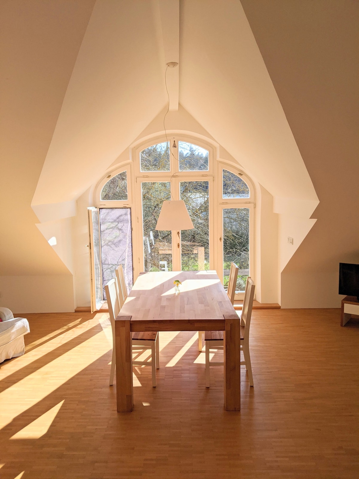 Tá an t - árasán stiúideo oscailte san Torhaus mar chuid de chlós sínte ón 17ú haois. Tá seanchoillte agus trusses nochta timpeallaithe ag maidí róis agus gairdín álainn. Agus muid ag bunú, tá an - bhéim curtha againn ar inbhuanaitheacht. Tá ath - obair déanta agus reworked. Tagann a lán de na soilse, na teicstílí agus na pictiúir ónár stiúideo. Tugann sé seo an ailtireacht oscailte a stíl speisialta chomh maith lena charachtar cairdiúil agus uathúil.