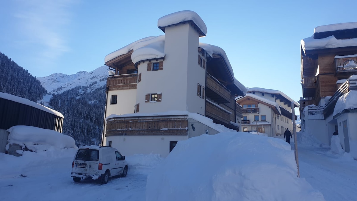 Árasán in St. Anton am Arlberg - laethanta saoire agus caitheamh aimsire sa dúlra. I suíomh cois cnoic, ciúin agus grianmhar, i gceantar Oberdorf. Rochtain éasca ar na carranna cábla agus ar an ionad (siúlóid 3 -5 nóiméad síos an cnoc) chomh maith le radharc gan bhac ar na sléibhte. Stopann Sráidbhaile agus Verwallbus ag an teach. Gach siopa, bialann, linn snámha agus cosán fánaíochta laistigh d'achar siúil. Páirceáil ar fáil saor in aisce. Gnó teaghlaigh. Níl an cháin áitiúil € 3,00 pPpN agus an glanadh deiridh € 45,00 in aghaidh an fhanachta san áireamh