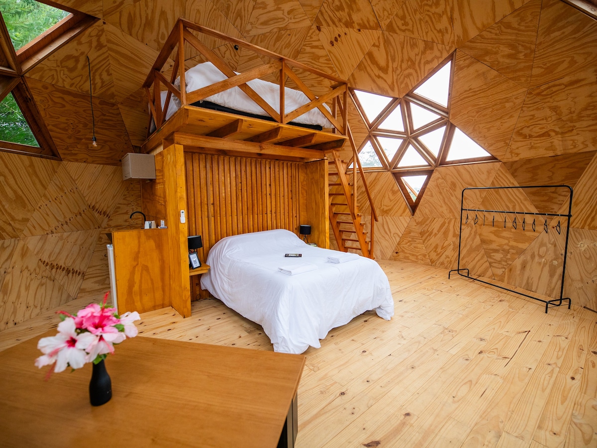 Moana, cábán úrnua, tógtha chun comhtháthú go hiomlán leis an gcomhshaol, an dúlra atá thart timpeall air agus taitneamh a bhaint as a bheith in áit uathúil ina bhfuil na sónna agus an compord go léir atá ag teastáil. Tá fáilte roimh do pheata! Dearamar a doras tosaigh féin, agus mar sin, is madra pór beag í, is féidir léi fanacht in Moana!
