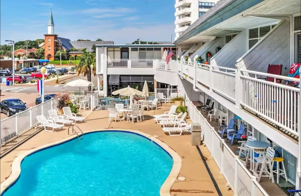 Foirgneamh i stíl boutique ina bhfuil linn snámha, páirceáil ainmnithe, agus rochtain ar dhoras códaithe. 2 sheomra leapa agus 2 sheomra folctha ina bhfuil cistin iomlán agus gach saoráid. Bain sult as an linn snámha le linn mhíonna an tsamhraidh (Bealtaine28ú - 30 Meán Fómhair) nó siúil bloc eile chun taitneamh a bhaint as an Trá an t - am ar fad den bhliain. Níl bialanna iomadúla de gach cineál timpeall an tsuímh seo agus siopa mór grósaera Harris Teeter ach ar shiúl. Tar ag baint sult as Saol na Trá ina bhfuil an ceol agus na healaíona flúirseach. Caithfidh an príomh - aoi a dhéanann áirithint a bheith 21 bhliain d'aois ar a laghad