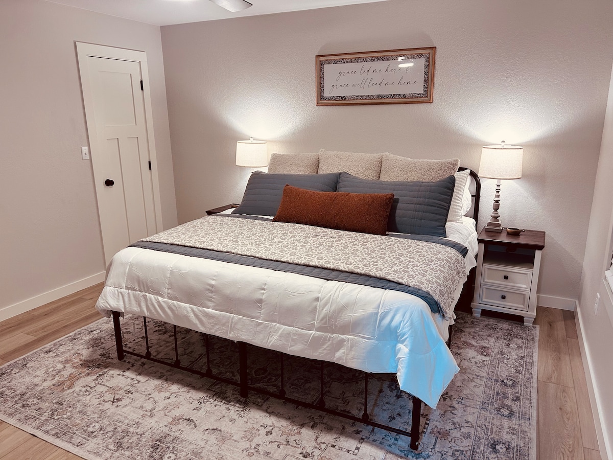 Lig do scíth leis an teaghlach ar fad ag an áit shíochánta seo atá athchóirithe go hiomlán, tá gach rud nua agus úr. Bain sult as an tráthnóna nó an mhaidin ar an bpóirse tosaigh agus cúil díreach in aice leis na bláthanna. Cúinne a lán le go leor páirceála agus hookups rv. Tá an pháirc suite bloc amháin ar shiúl. Is áit chairdiúil do pheataí muid agus tá clós cúil againn. Caife nó espresso chun tús a chur le do lá agus béilí éagsúla bricfeasta le roghnú astu. Calafoirt USB atá suite go háisiúil sna hasraonta atá suite sa chistin agus sa seomra suí.