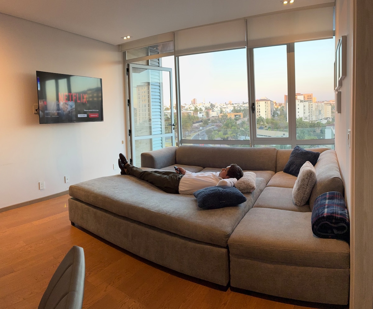 ✨ Único departamento para 8 personas en Angelópolis Sonata, San Andrés Cholula, Puebla, con balcón y vista en una de las alturas más exclusivas de la ciudad, jacuzzi, spa, alberca climatizada, amenidades de lujo, 4 habitaciones con baño y Smart TV, totalmente climatizado, cocina equipada, lavadora, seguridad 24 h, a pasos de plazas, restaurantes, bares, supermercados, cine IMAX, coworkings, vivo en el mismo edificio, atención inmediata y personalizada.