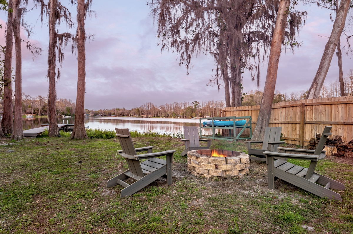 Escape to this newly renovated 3BR, 2BA lakefront cabin on Lake Wood. Perfect for families or friends, this cozy retreat features a hot tub, TV lounge, dining area, ping pong and a spacious covered patio with stunning lake views. Kayak from your doorstep, roast marshmallows by the firepit, do some fishing or visit nearby Old McMicky’s Farm and an Alpaca Ranch. Just 25 mins from Tampa Int’l and 27 mins to the beach—relaxation awaits...book your getaway today!