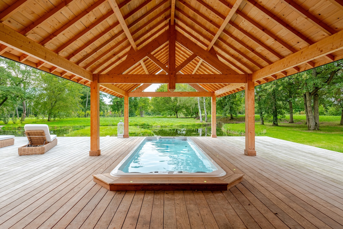 Svuít cois uisce le spá snámha agus sabhna.