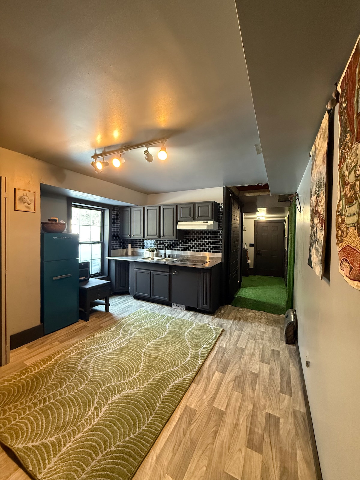 This spacious single-story retreat has all the modern amenities for your Adirondack winter getaway. With trail access right at the base of the driveway & plenty of room to park your trailer onsite, you can reach the snowmobile trail systems with ease. This listing is one of two units on site and offers 1 queen bedroom accompanied by extra sleeping space with a pull-out couch. Our kitchen and bathroom come fully equipped with all the essentials to make your stay easy and enjoyable