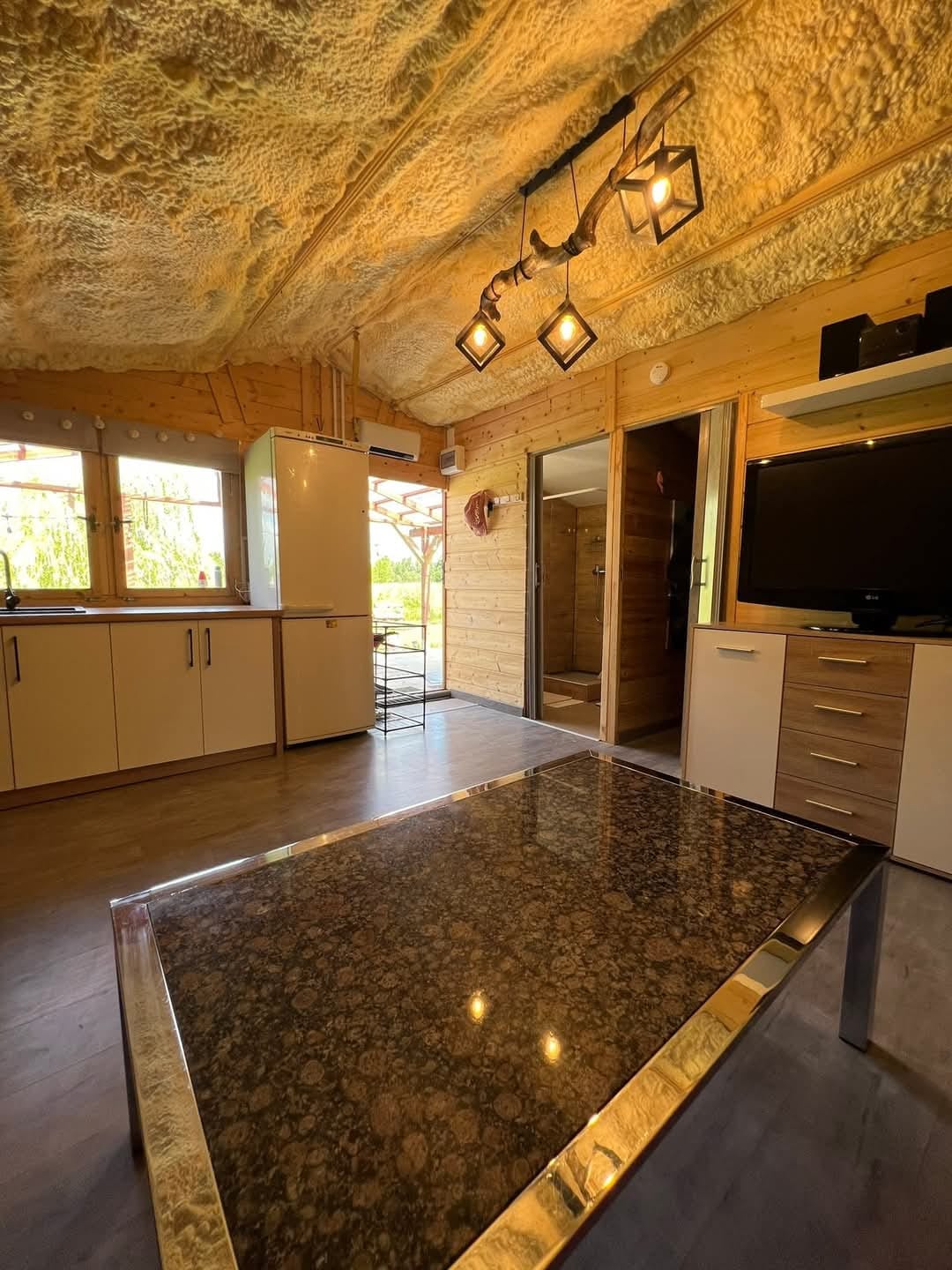 Fáilte go dtí ár dteachín ó cheann ceann na bliana i lár Mazury Garbate - réigiún ina bhfuil an t - aer is glaine sa Pholainn. Cuirimid scíth ar fáil i bhfad ó dhordán agus ó ghnóthas na cathrach, i gceantar síochánta, i ndlúth - theagmháil leis an dúlra. Is pointe tosaigh foirfe é an teachín do dhaoine aonair a bhfuil meas acu ar chineálacha gníomhacha fóillíochta - cosáin rothar gleoite, na turais cadhc agus na bealaí siúlóide.Sauna agus tobán te gairdín ar an láthair (le fanacht 3 oíche ar a laghad - 1 seisiún sa sabhna nó sa tobán te go heisiach - saor in aisce).
