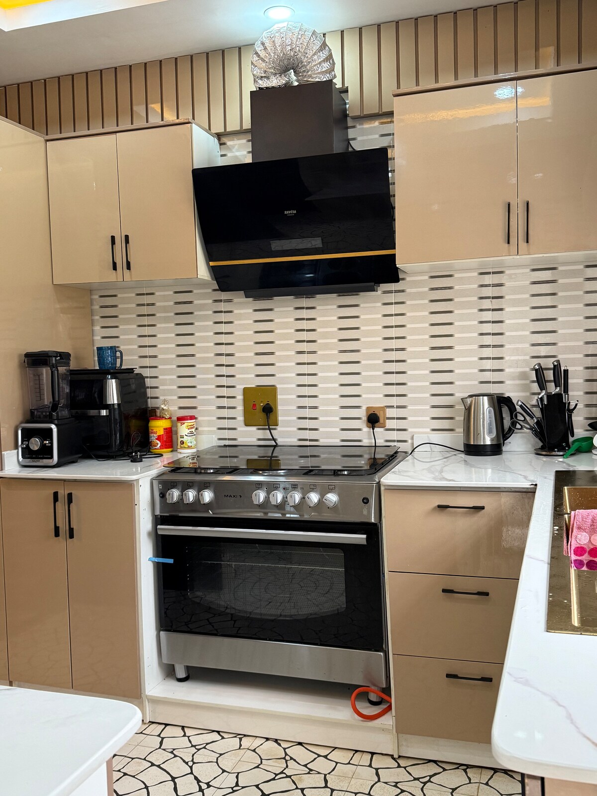 24/7 electricity, free wifi, Fully fitted kitchen, washing machine, water heaters, jacuzzi in master bathroom, 24/7 security, Netflix, prime video, Big tv and Netflix & prime video in master bedroom, Super king size master bedroom, secure parking space, Fully furnished dinning area, blender, BBQ grill, Cooking basics, hot tub, refrigerator, gas 4 burner, Barbecue utensils, hot water kettle, iron, oven, microwave, very conducive environment and family friendly, very quiet environment.