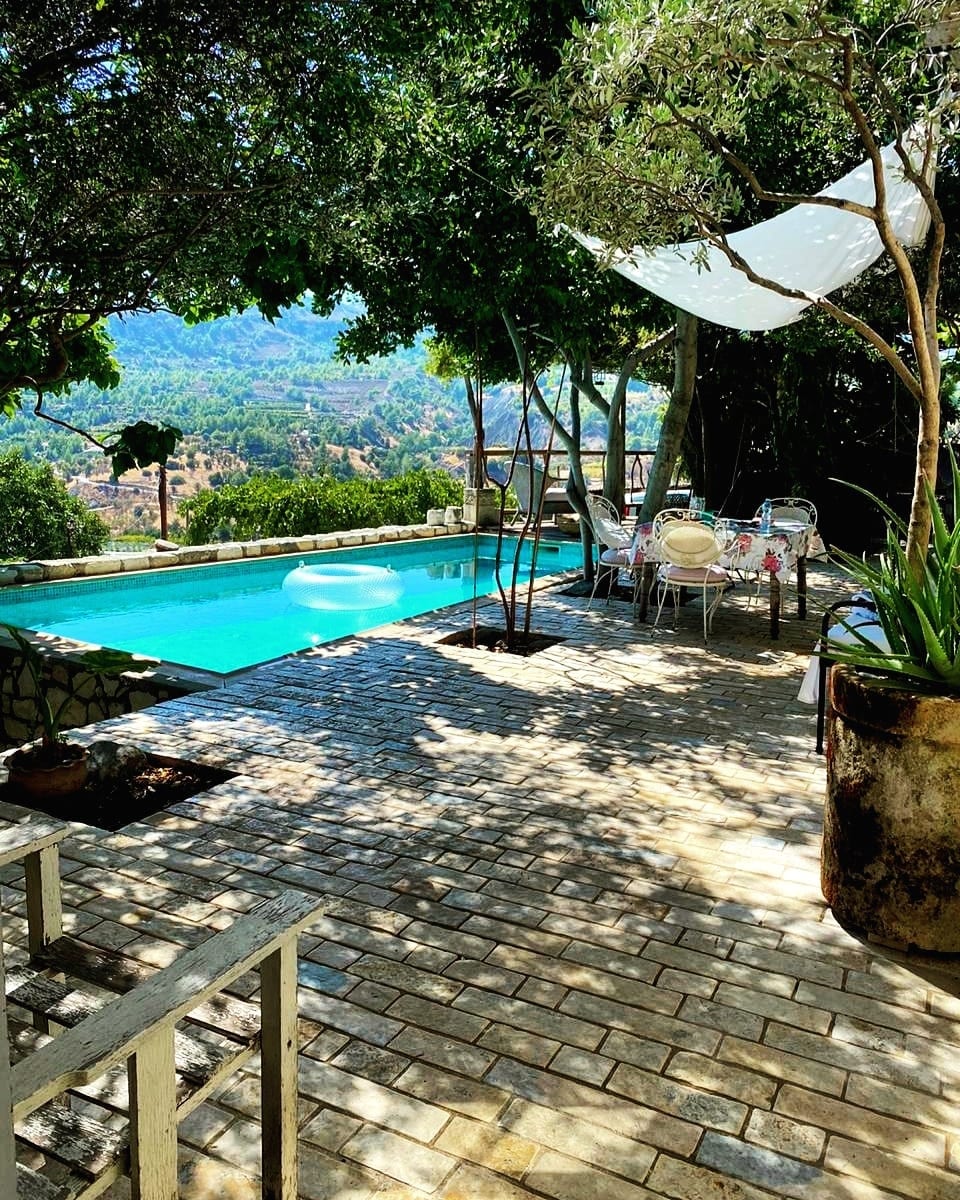 Teachín álainn uathúil ar thaobh sléibhe ina bhfuil linn snámha mhór agus áit lasmuigh ina bhfuil radhairc iontacha ar na sléibhte agus ar an bhfarraige. Suite ar chnoic shráidbhaile Vyzakia díreach roimh shliabh Troodos agus Kakopetria is féidir leat teacht anseo chun do scíth a ligean agus taitneamh a bhaint as an taobh níos sléibhtiúla den Chipir. Níl suíomh iontach ach 25 nóiméad ón trá is gaire agus gan ach 15 nóiméad ón sliabh. Scoite amach ar thaobh cnoic príobháideach is féidir leat a bheith cinnte go mbainfidh tú taitneamh as saoire shíochánta.